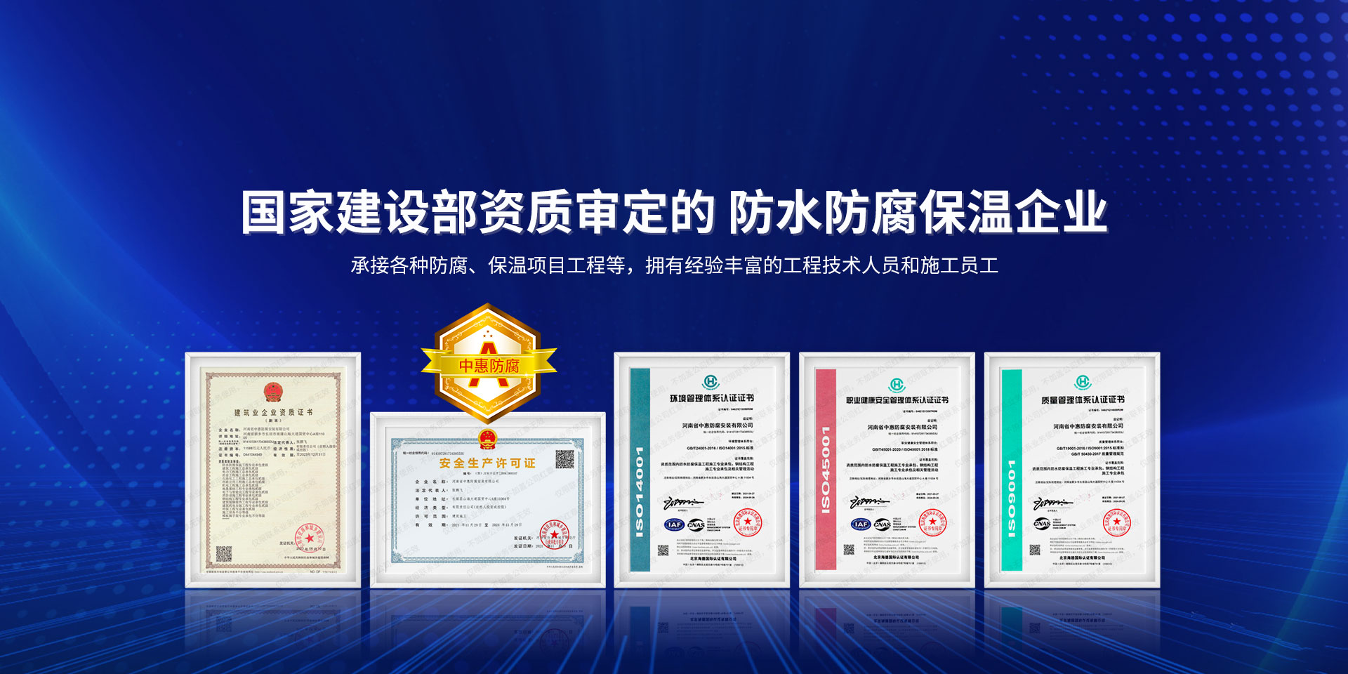 公司經營范圍:防水防腐保溫工程;消防設施工程;建筑裝修裝飾工程;建筑機電安裝工程;電力工程;建筑工程;石油化工工程;工業清洗工程;油罐清洗工程;鋼結構工程;環保工程;模板腳手架工程;電纜防火封堵、防污閃噴涂、外墻外保溫工程;各類施工勞務作業;設備維修、船舶鉚焊、涂裝;電力工程材料、建材、防水材料、防火材料、防腐保溫材料銷售,并相繼通過了GB/T19001-2008idtISO9001:2008GB/T50430-2007質量管理體系認證證書。GB/T24001-2004idtISO14001:2004環境管理體系認證證書。GB/T28001-2011idtOHSAS18001:2007職業健康安全管理體系認證證書。公司是中國防腐蝕于防護協會、中國施工企業管理協會、電力協會和中國鋼結構防水協會會員單位。 公司的經營業務涵蓋了石油、化工、電力、冶金、煤炭、船舶、國防、燃氣、水利、環保、交通運輸、航空及國防軍工和輕紡市政等行業的防腐保溫絕熱設備。鋼結構安裝、防火、防水、金屬噴鍍、聚脲噴繪、陰極保護、防滲透堵漏、玻璃鋼及各種磚版材料襯里、橡膠襯里、煙氣硫和耐酸溶劑腐蝕等工程施工。公司連續十年榮獲“省市先進施工企業”“安全生產先進單位”“重合同,守信用企業”和“AA***資質企業”的稱號。2000年被命名為市級文明單位,2002年被國家工商行政管理局命名為“重合同,守信用的企業”、被中國工業防腐蝕技術協會命名為“防腐蝕企業,能源節約及環境保護領域有豐富的經驗和***的業績。工程一次交驗合格率100%。其中攀枝花鋼鐵公司煉鐵廠四號高爐及熱風爐防腐工程、上海寶鋼公司煤氣柜防腐工程、撫順石油一廠裝置防腐項目、齊魯石化公司稀烴廠高塔防腐工程、吉林化學工業公司煉油廠油罐防腐工程、天津石化熱電廠六號爐頂棚聯絡管保溫工程、大慶油田(太倉)力神泵業工程、中國化學工程第十一建設工程、中原油田勘探局工程、中國石化銷售有限公司華北分部、魯皖輸油管道工程、貴州開磷息烽合成氨工程、陜西黃陵煤化工程、中國石油天然氣西部管道塔里木輸油工程、邯鋼集團邯寶鋼鐵公司煉鐵工程、德州供電工程、吉寶(南通)船廠工程,偃師華潤熱力工程、鄭州熱力總公司。 河南省中惠防腐安裝有限公司愿以豐富的施工經驗,***的技術,***的設備,***的管理,***的服務,竭誠為國內外廣大的用戶提供***滿意、******的工程作品。 我公司愿與國內外同仁一道,團結協作,共同推進防腐蝕行業發展! 公司地址:河南省長垣縣建設路北段360號 固定電話:0373-8866488 郵編:453400 網址:http://www_zhff_com_cn.byg9.com